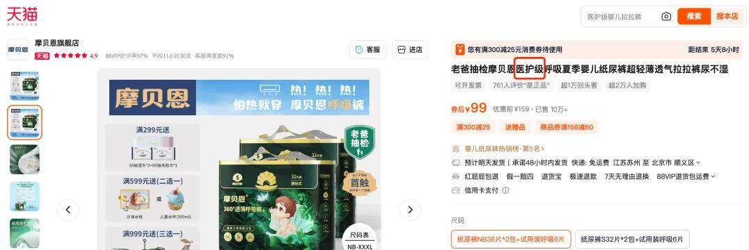 这些有体量、有声量的大企业尚且如此,中小企业的生存状况可能会更加糟糕。需要注意的是,由于行业准入门槛较低,市场上产品同质化严重,假冒伪劣现象屡禁不止。在这一背景下,众多企业为了吸引消费者注意,拉开与竞品之间的差异,开始创新。但也伴生出一些滥竽充数的噱头。例如,“医护级婴幼儿纸尿裤”。