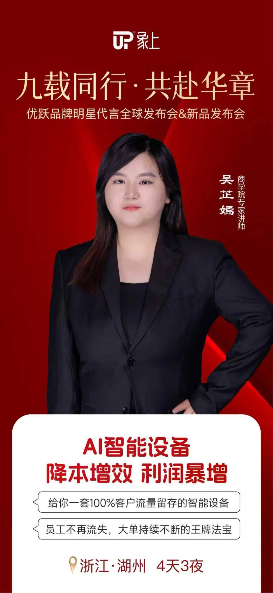 大会现场,象上商学院首席讲师 吴芷嫣将带领大家玩转“象上家AI智能设备”,揭秘实体店如何通过象上家数字化工具实现100%客户留存、降低人工依赖、提升大单转化率。