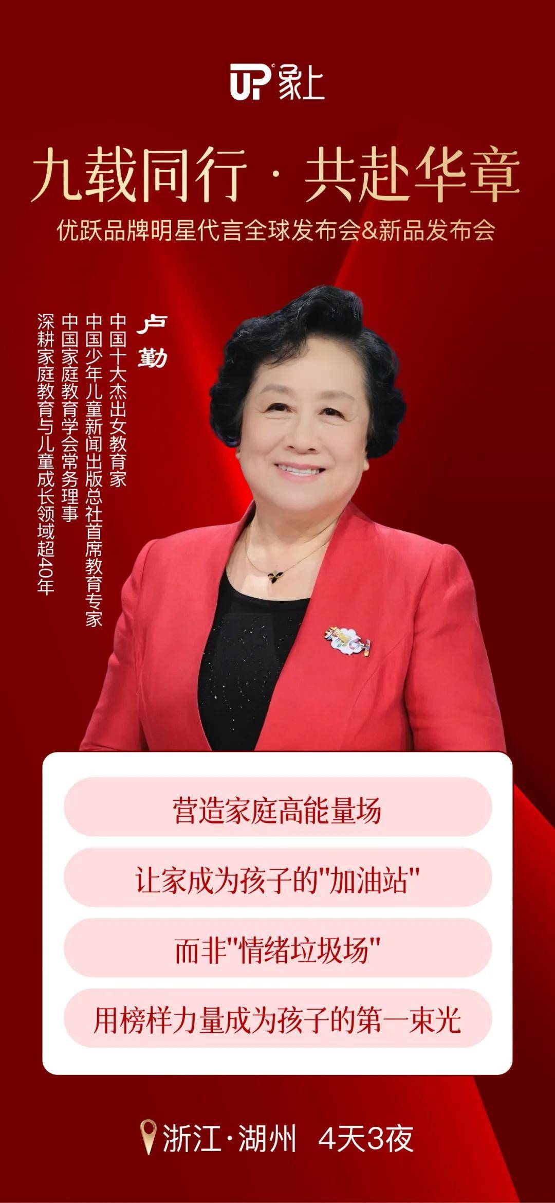 对这一底层逻辑的重新诠释与落地,就体现在会议的重磅嘉宾阵容中。据透露,深耕家庭教育与儿童成长领域超40年的中国十大杰出女教育家、中国少年儿童新闻出版总社首席教育专家卢勤老师将亲临现场,带来《让客户为“情感价值”买单的亲子关系高维课》主题演讲,拆解中国家庭应该如何构建更健康的亲子关系。