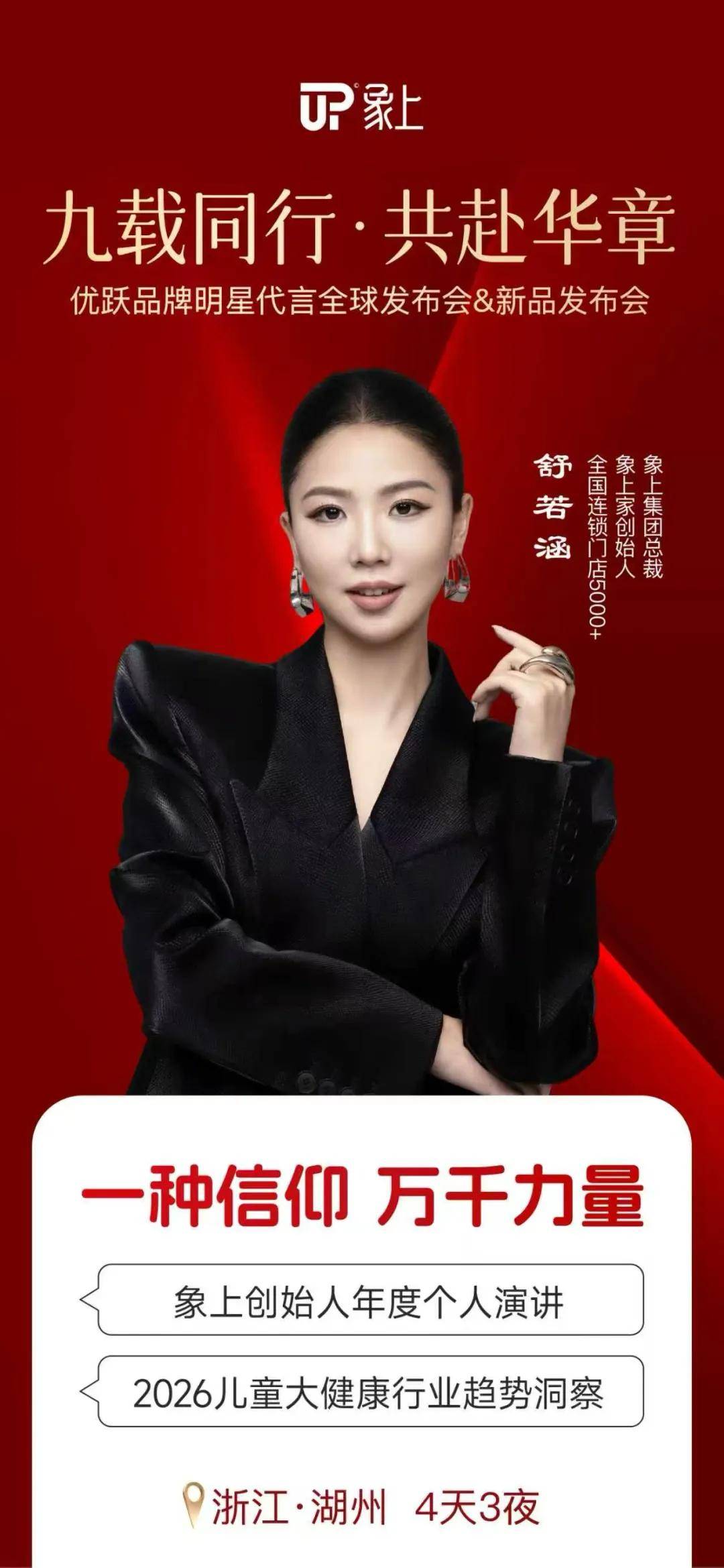 九载同行,共赴华章。2026年3月15日,浙江湖州,象上集团“优跃品牌明星代言全球发布会&新品发布会”即将启幕,更多精彩内容将在大会现场一一解锁。一场关于儿童大健康的产业变革,即将震撼上演!