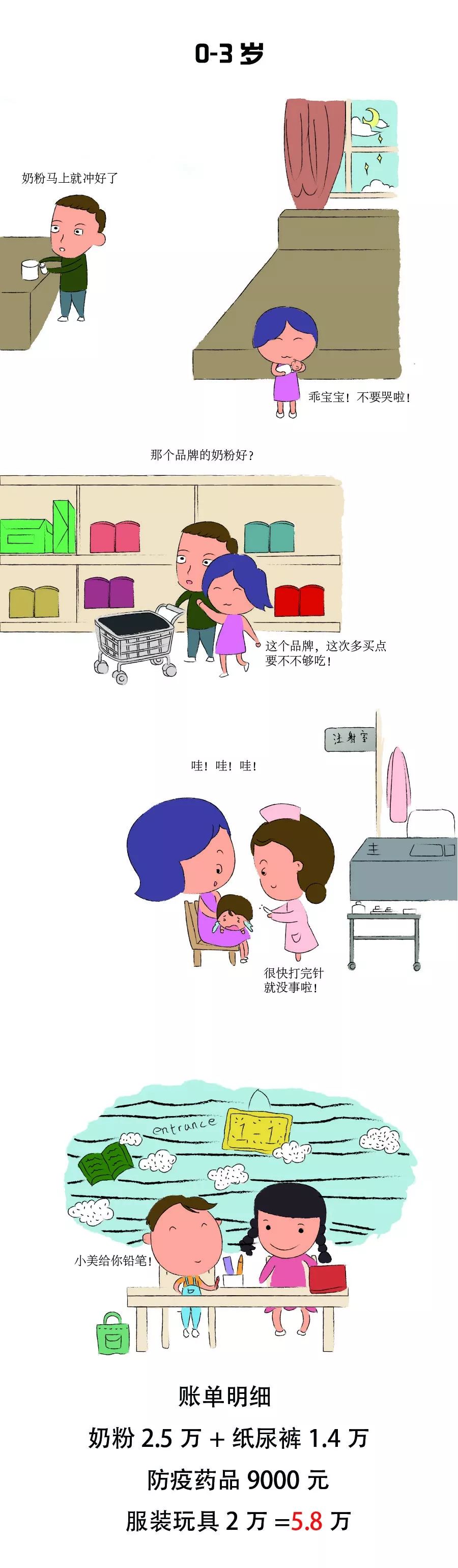 这么算下来,养一个孩子到长大成人,至少需要花费: