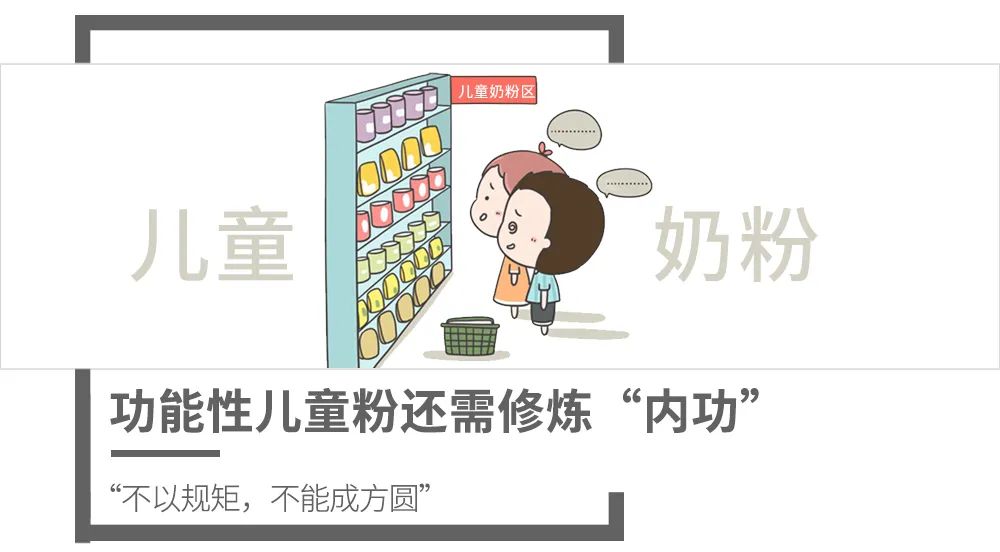 从法律法规,以及相关标准来看,无论是保健食品,还是特殊医学用途配方食品,功能都必须是明确的、具体的,而且经过科学验证被肯定的。可反观功能性儿童奶粉的发展,已经远超“保健食品”和“特殊医学用途配方食品”定义的范畴。虽然营销宣传十分蛊惑人心,可能还欠缺科学考究。