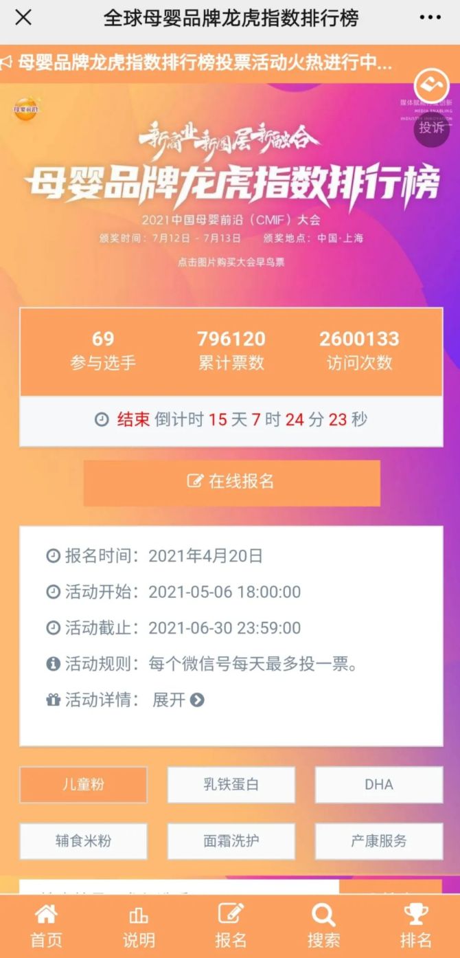 行业迭代升级的洪流中挑战总是与机遇并存,有的可将变数转为踏板,成功打开宝藏新挖掘地,但却有不少品牌被振出局或者处于迷雾之中。是以,母婴前沿在召开以“新商业·新圈层·新融合”为主题的2021中国母婴前沿(CMIF)大会前,特于5月初正式开通“母婴品牌龙虎指数排行榜”参选通道,全面挖掘母婴新势力品牌,并充分发挥这批中坚力量为母婴行业带来新思维、新营销、新模式。